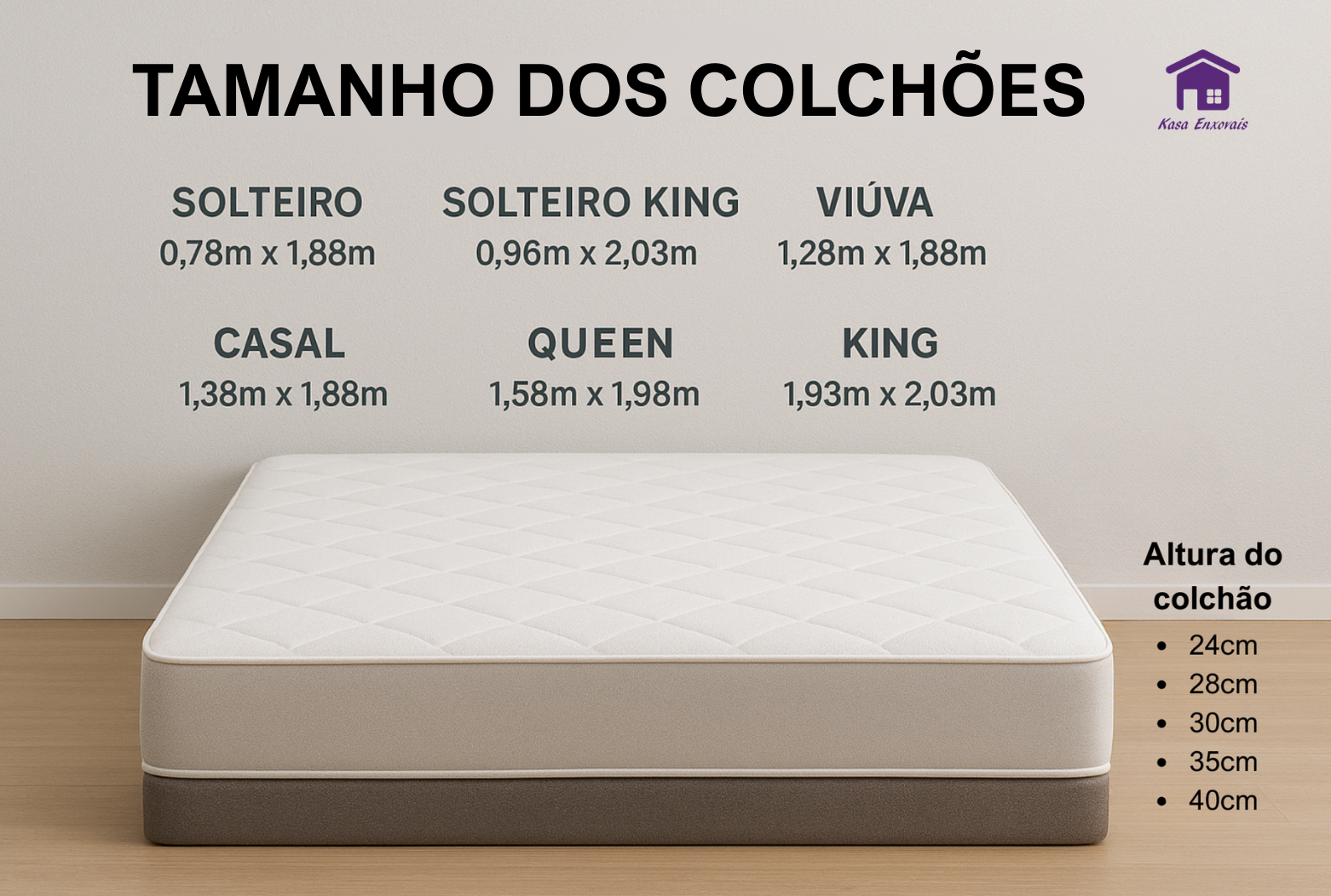 **A altura do colchão pode variar conforme a marca. Ao escolher o lençol, prefira sempre um modelo com a mesma altura ou maior que a do colchão — nunca menor. Se ficar em dúvida, use uma trena ou fita métrica para medir seu colchão.